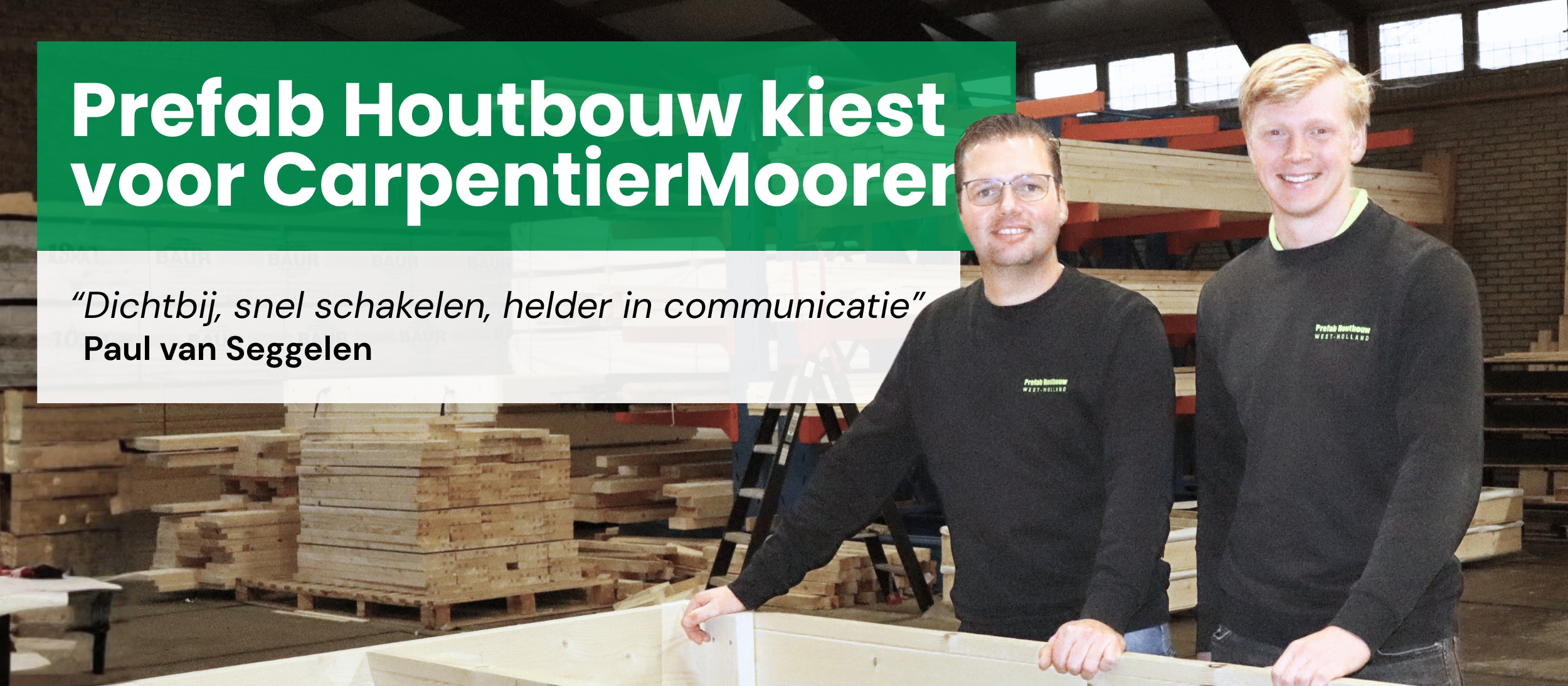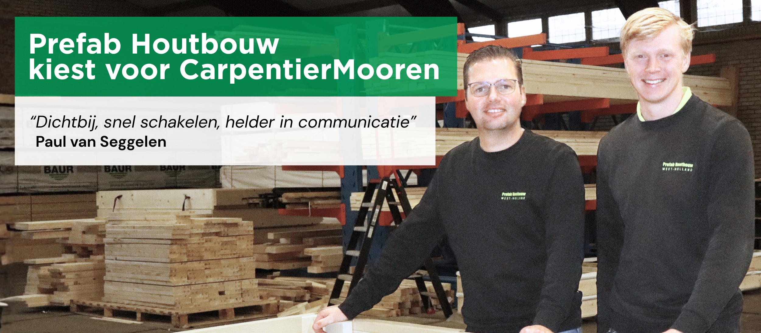 “Als specialist in prefab houtbouw en dakopbouwen zoeken wij partners die snappen hoe een aannemer denkt. CarpentierMooren doet dat. Door de korte lijnen en heldere communicatie kunnen we altijd snel schakelen, en doordat het assortiment compleet is hebben we één hoofdleverancier waar we op kunnen bouwen."
