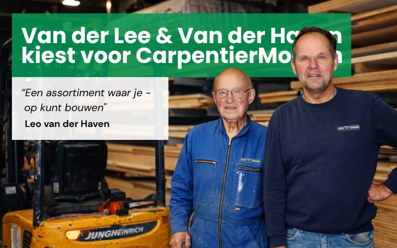 “Wat voor ons het verschil maakt bij CarpentierMooren? Het persoonlijke contact en het meedenken. We worden snel geholpen, kunnen makkelijk schakelen en rijden zo even langs. Het assortiment is vrijwel compleet, er is veel voorraad en de prijsstelling is scherp. Geen gedoe, maar gewoon goed geregeld met een vast aanspreekpunt. Precies daarom werken wij graag samen met CarpentierMooren.”