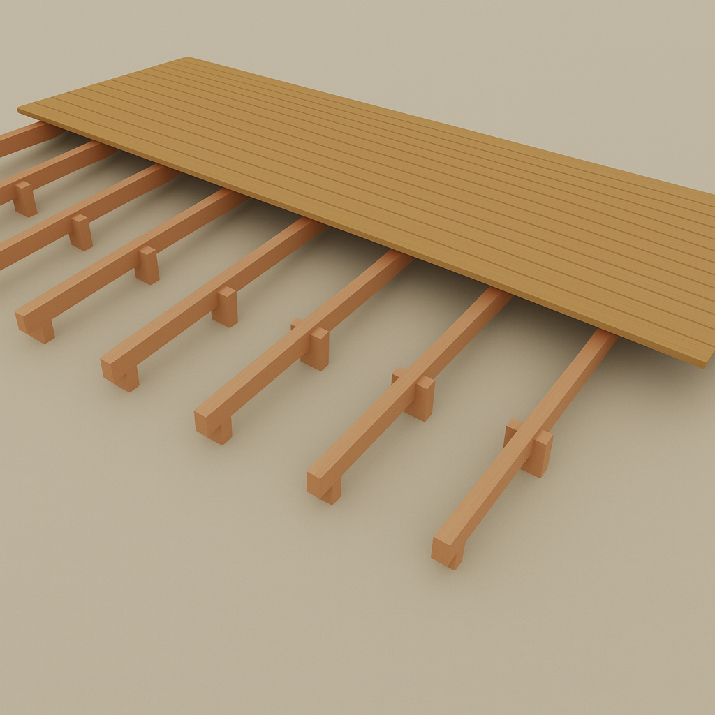 Voor een stevige vlonder is het niet alleen belangrijk om kwalitatieve materialen te gebruiken, maar ook om deze op de juiste manier te monteren. Zo mogen de onderregels niet te ver uit elkaar worden geplaatst, omdat dit de kans op doorbuiging van de planken vergroot.
