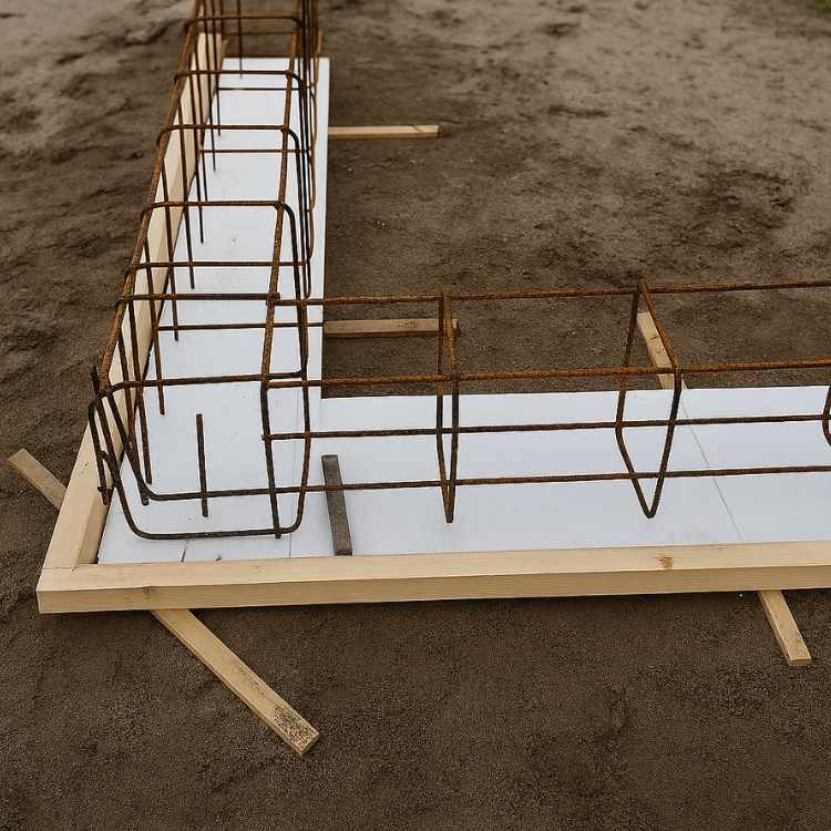 Het plaatsen van de wapeningskorven is een belangrijke stap om de fundering extra sterkte te geven. Begin met het neerleggen van drie tot vier betonribben per korf van drie meter. Deze ribben vormen de ondersteuning waarop de wapeningskorf komt te rusten, waardoor je automatisch een onderdekking van 35 millimeter creëert, precies volgens de voorschriften. Daarna plaats je de dekkingsblokjes, ook wel pylons genoemd, die uitsluitend geschikt zijn voor EPS‑funderingskisten. Je zet deze op de beugels van de korf, zodat je ook aan de zijkanten de voorgeschreven dekking van 35 millimeter behoudt.