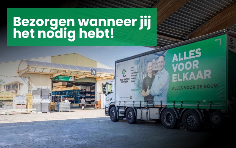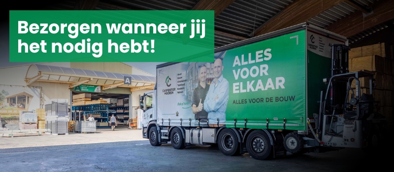 Op de bouwplaats wil je snel door zonder logistiek gedoe. CarpentierMooren zorgt voor soepele levering of snelle afhaal via onze drive-in afhaalcentra. Liever bezorgen op locatie? Dat regelen we ook. Heb je een tijdslevering of speciaal transport nodig, zoals met kraan of op hoogte, dan denken we mee en leveren we veilig verpakt. Voor 12:00 besteld betekent vaak de volgende werkdag al geleverd.