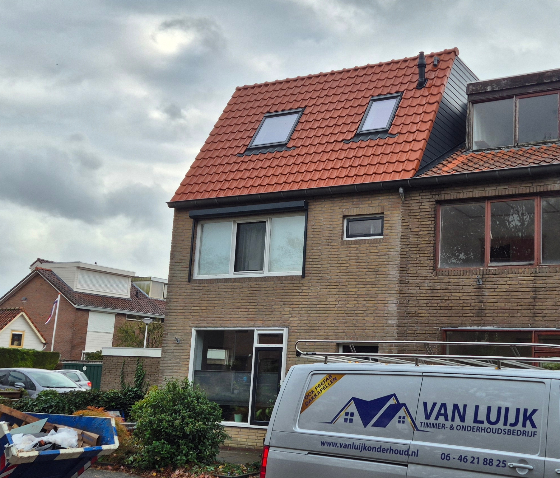 In dit project speelde Van Luijk een centrale rol in de coördinatie en montage van de dakopbouw. Dankzij hun vakmanschap en oog voor detail verliep de uitvoering uitermate soepel. De korte communicatielijnen en jarenlange samenwerking zorgden ervoor dat elke fase van het project efficiënt op elkaar aansloot. Het eindresultaat is een dakopbouw die zowel technisch als visueel naadloos aansluit op de bestaande woning, een duidelijke weerspiegeling van de kwaliteit die Van Luijk Onderhoud standaard levert én de duurzame materialen die CarpentierMooren beschikbaar stelt.