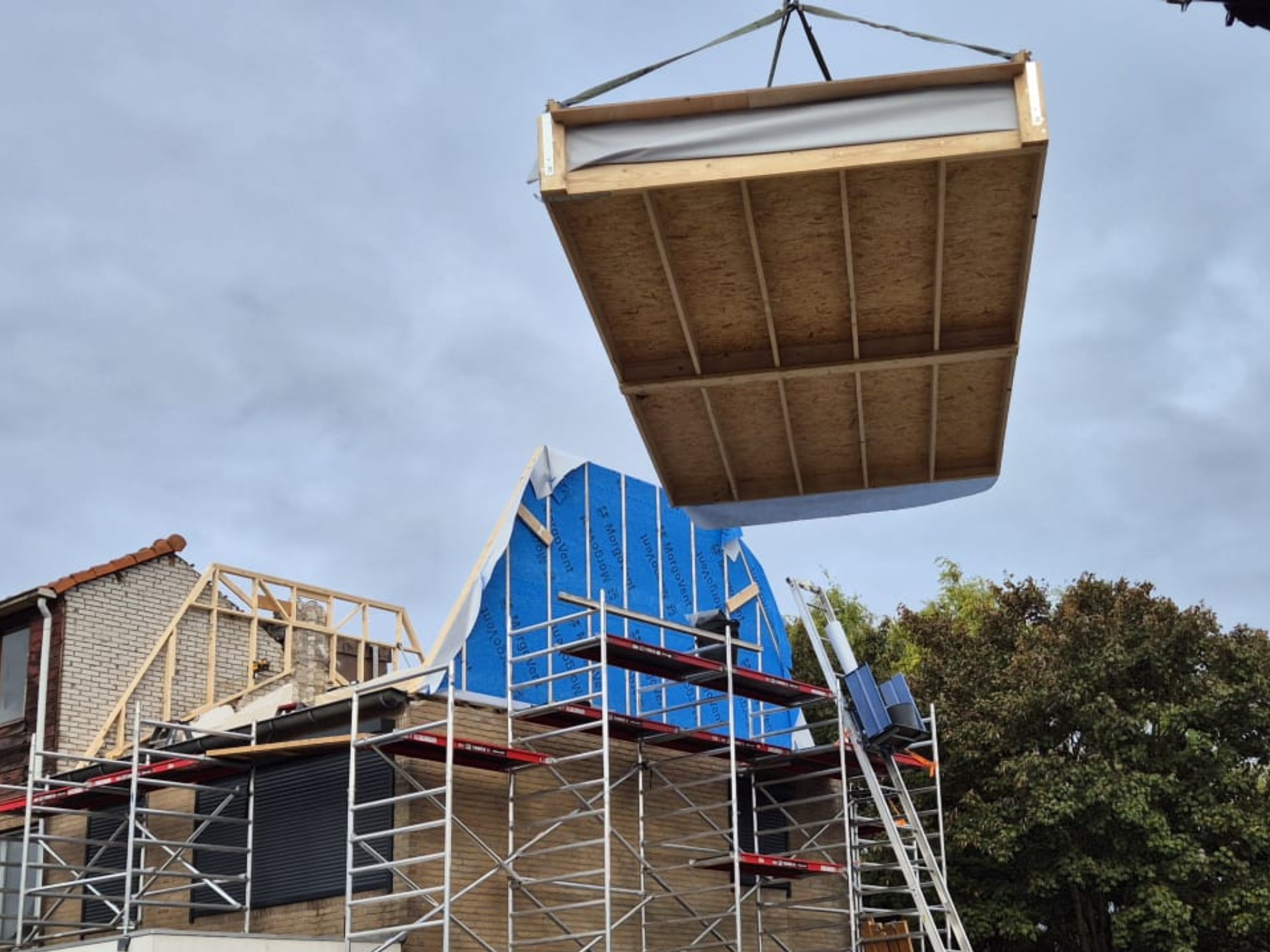 Dankzij de nauwkeurige voorbereiding en het gebruik van hoogwaardige materialen verliep de bouw efficiënt, veilig en bijzonder vlot. Waar in de ochtend nog een traditionele woning stond, verscheen dezelfde dag een volledig nieuwe verdieping die het wooncomfort significant verhoogt. De nieuwe dakvorm, de strakke afwerking en de moderne uitstraling maken dit project een indrukwekkend voorbeeld van duurzame woninguitbreiding.