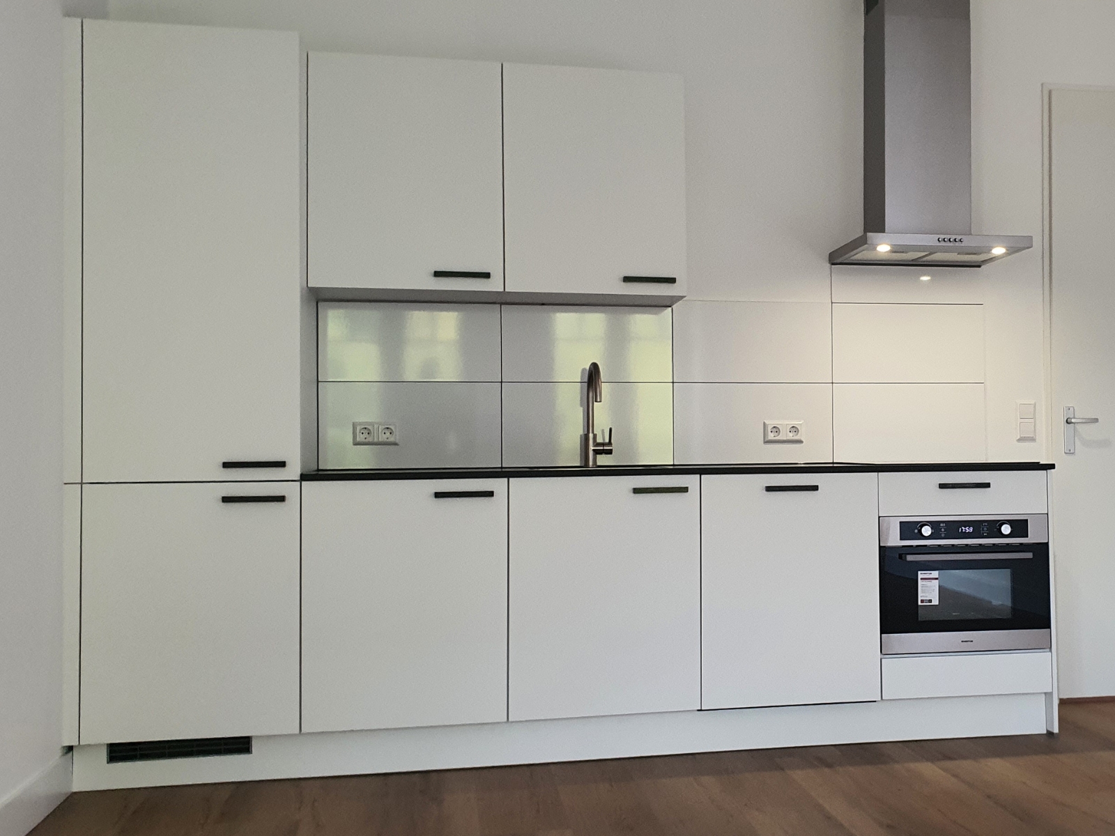 Voor dit project verzorgde CarpentierMooren de volledige levering van de keukens, uitgevoerd volgens ons voorraadconcept. De gekozen uitvoering in wit met matzwarte handgrepen van de Duitse kwaliteitsleverancier Nolte geeft de keukens een moderne en tijdloze uitstraling die in elk appartement tot zijn recht komt.